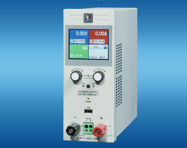EA-PSI 9000 T系列是一款由微處理器控制的實(shí)驗(yàn)室 電源。它立足于用戶友好的交互式操作概念,配備 一套完整的標(biāo)準(zhǔn)功能。其輸出參數(shù)、監(jiān)控功能與其 它設(shè)定的配置很智能且舒適。 所有輸出參數(shù)的監(jiān)控功能,可幫助用戶減少測(cè)試設(shè) 備,且?guī)缀蹩刹挥冒惭b外部監(jiān)控硬件與軟件。由兩旋鈕,一個(gè)按鍵,三個(gè)LED以及TFT彩色觸摸屏 組成的控制面板,顯示所有關(guān)鍵數(shù)值與 狀態(tài),用戶 只需輕輕一點(diǎn)手指,就可輕松操作本設(shè)備。